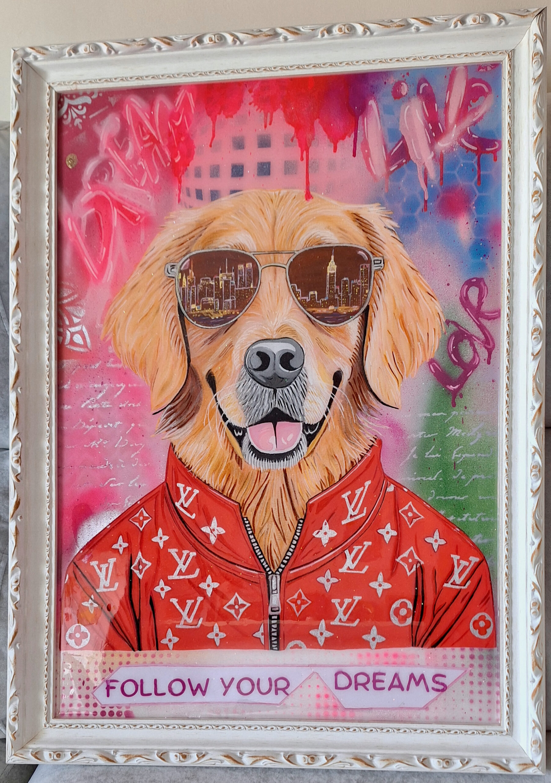 Acrylic, spray, resin on canvas